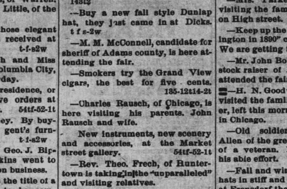This local “nuggets” section from an 1890 Indiana newspaper shows an example of how parents can be found in unexpected places. Although this listing only provides the father’s name, it is enough to set us off on the right path.